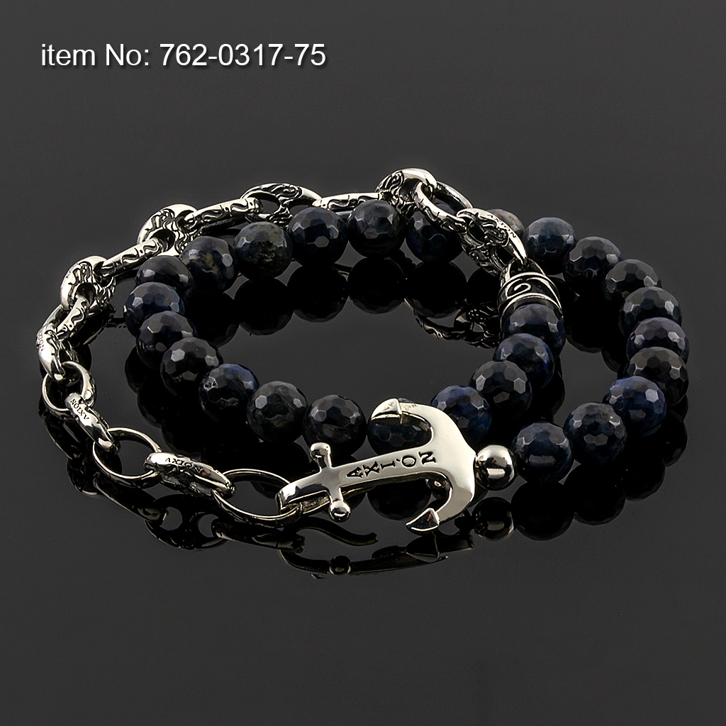 Ασημένιο βραχιόλι 925° με άγκυρα (8 mm) και με διπλή σειρά από αλυσίδα - Πατήστε εδώ για περισσότερα χρώματα -