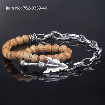 Ασημένιο διπλό βραχιόλι 925° με βέλος (8 mm) και με αλυσίδα