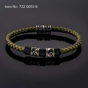 Ασημένιο βραχιόλι με μοτίφ (5 mm) και με γνήσιο δέρμα - Πατήστε εδώ για περισσότερα χρώματα -