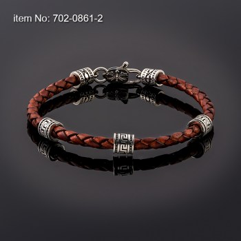 Bracelet with Sterling Silver with greek motifs and braided genuine leather